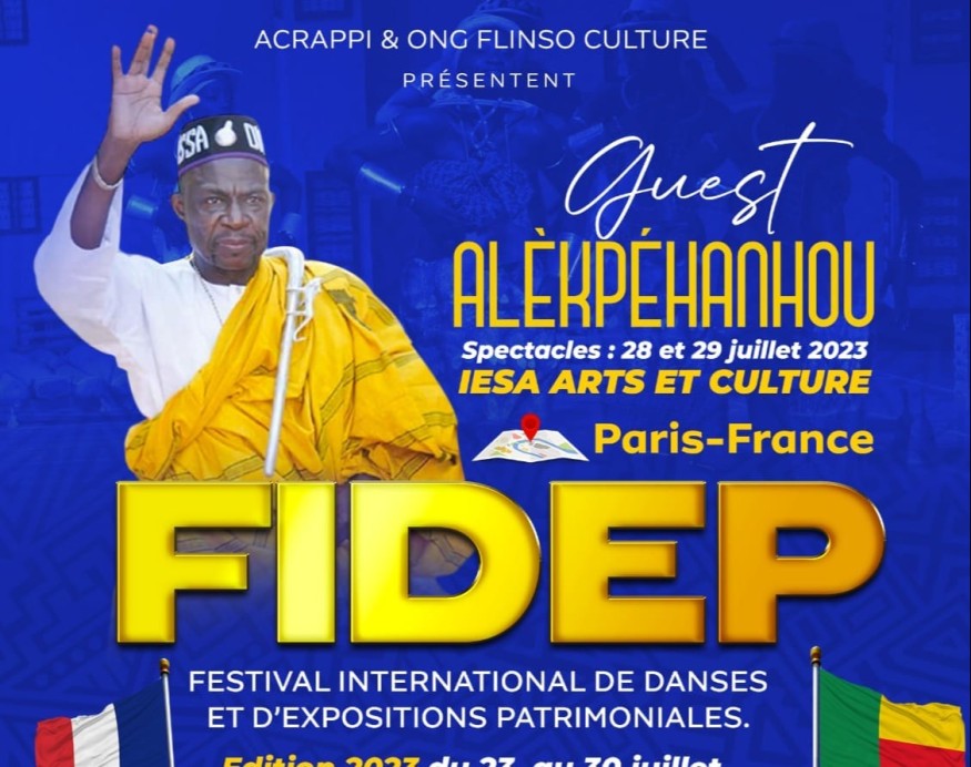 Et de 2 pour le Festival International de Danses et Expositions Patrimoniales. Le FIDEP a entamé sa 2ème édition à Paris du 25 au 30 Juillet, sous le hashtag #Fidep2023. Cet événement culturel d'envergure met en avant la richesse artistique et patrimoniale du Bénin, créant un pont entre les mondes de la culture et du développement à travers les chants et les danses du pays du Akonhoun (Rythme de la poitrine) avec en guests l'un de ses plus dignes repésentants, l'artiste Alèkpéhanhou.